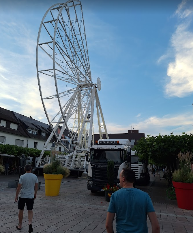 At the end of the day, we had a lovely dinner on the terrace of a steakhouse. This one was on a square where a Ferris wheel was being built, so we had something to watch while we ate. Of course we had to get another ice cream after dinner. That goes with this hot weather, right?