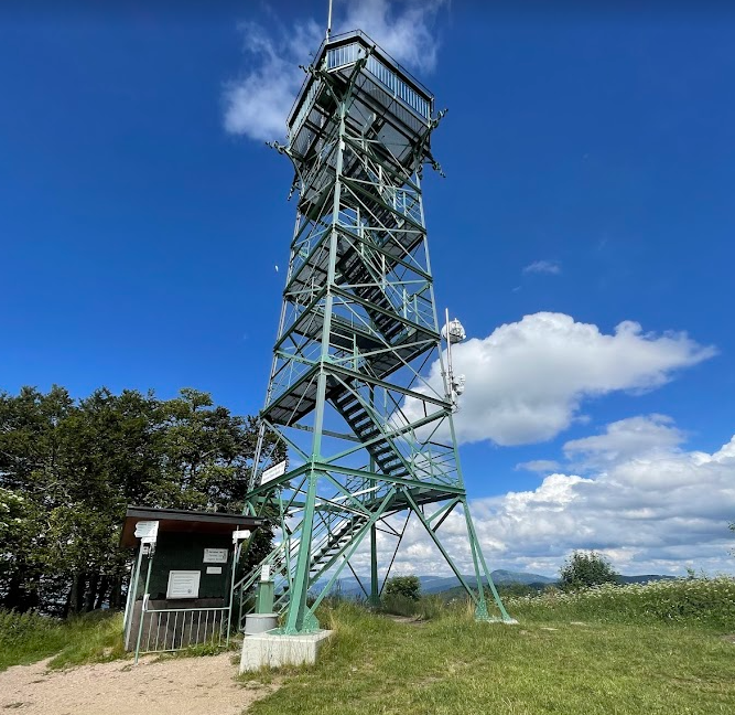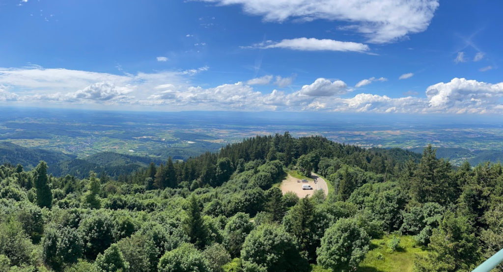 This tower took us another 25 meters or so higher, giving us a breathtaking view of the Rein valley. On the other side of this valley, we could see the Grand Ballon, where we had ridden earlier in the week. You could also see part of the Alps from here, including Mont Blanc.