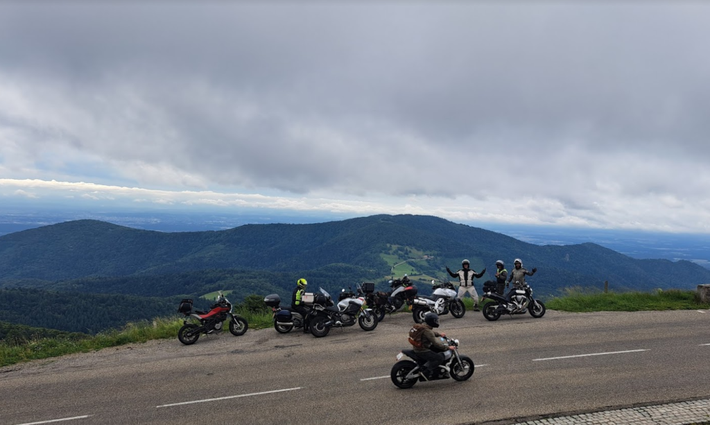Today promised to be a long ride, starting with winding roads through the Vosges Mountains, lots of fog on the Grand Ballon, long and fast turns, and through many villages.