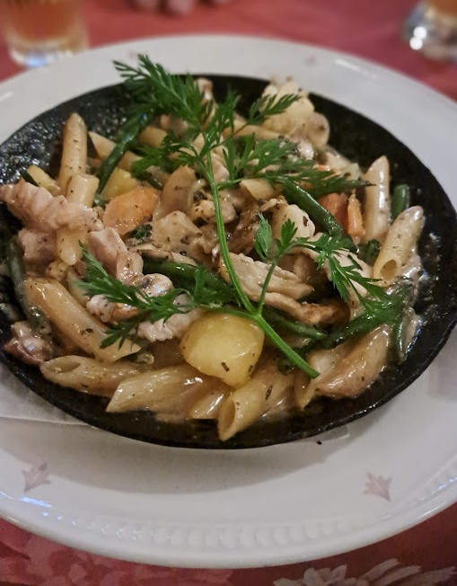 As a main course I had a pan of penne-rigate, chicken, vegetables, mushrooms and a cream sauce. Very worthwhile! This was followed by 2 cream puffs, vanilla ice cream scoops and whipped cream for dessert. Tomorrow the bike will have to work extra hard to drag this extra weight around….
