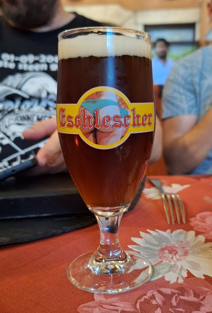 Around 17:45 we arrived back at the hotel, where we took a photo with the complete group. After freshening up, we walked to a nice and cozy restaurant in the center of Esche-sur-Sure. This restaurant had the impressive interior of an old castle.